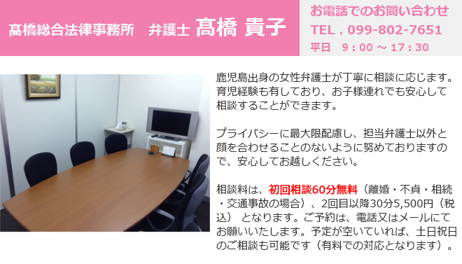 初回の相談 60分無料(離婚・不貞・相続・交通事故の場合)